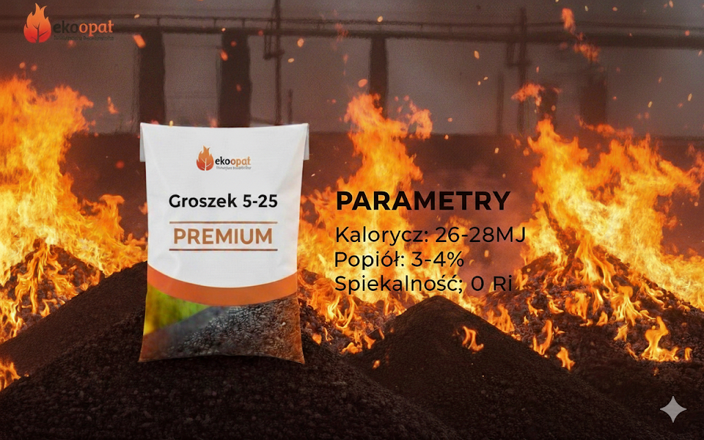 Wydajny ekogroszek o niskiej spiekalności i dobrych parametrach spalania.